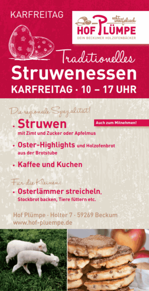 Traditionelle Events wie Struwenessen, Maifeier und Adventsmärkte – besondere Erlebnisse auf dem Bauernhof in Beckum, ideal für Familien, Gruppen und Vereine. Ein Ort für Begegnungen, Genuss und echte Hofkultur.