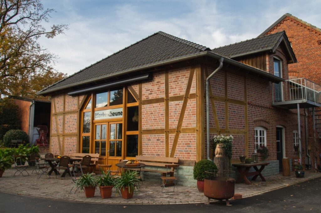 Rustikale Marktscheune und weitläufige Außenbereiche für individuelle Veranstaltungen. Traditionelle Hofevents wie Struwenessen, Maifeier und Adventsmärkte runden das Jahresprogramm ab